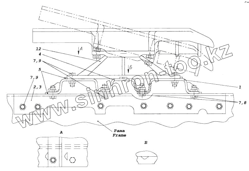 Каталог запасных частей к технике: Камский автозавод 5460. Установка седельно-сцепного устройства
