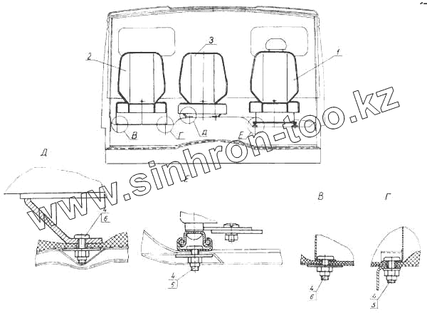 Каталог запасных частей к технике: Камский автозавод 5460. Установка сидений