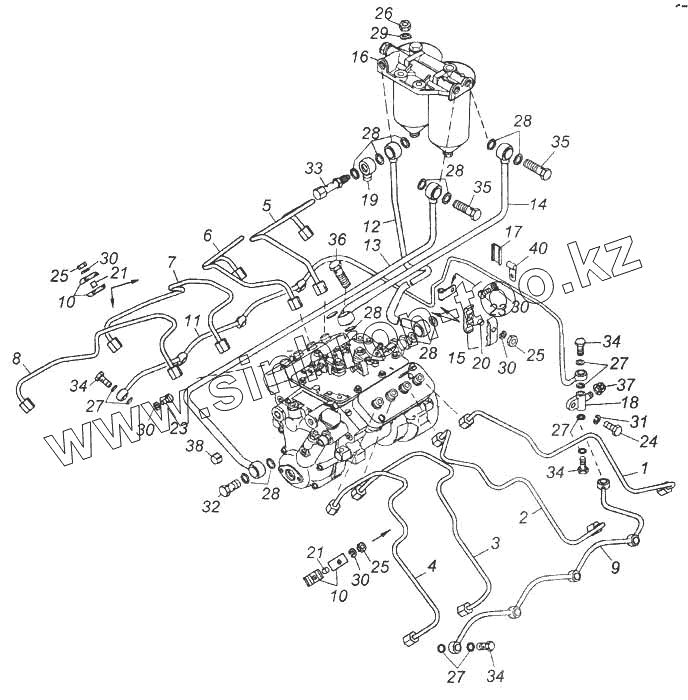 Каталог запасных частей к технике: Камский автозавод 5460. Установка топливопроводов