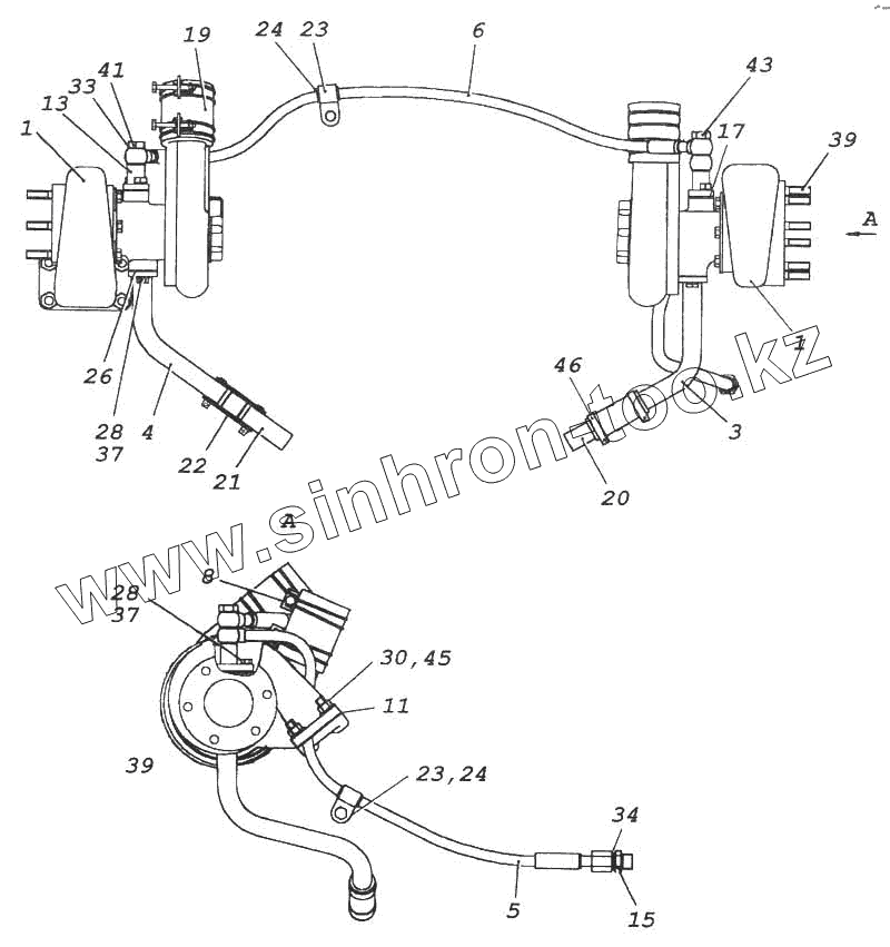 Каталог запасных частей к технике: Камский автозавод 5460. Установка турбокомпрессора