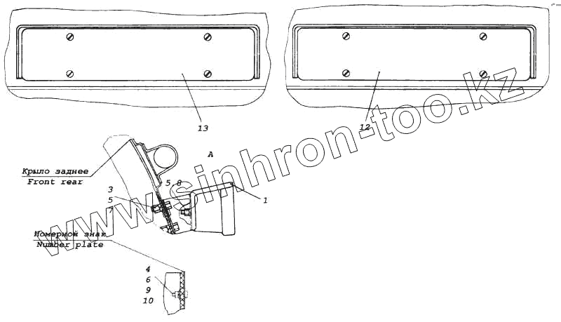 Каталог запасных частей к технике: Камский автозавод 5460. Установка задних фонарей