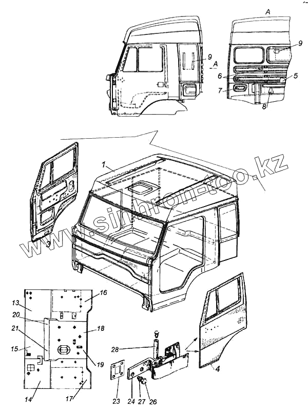 Каталог запасных частей к технике: Камский автозавод 5460. Кабина с дверями окрашенная