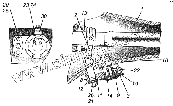 Каталог запасных частей к технике: Камский автозавод 5460. Картер заднего моста с механизмом блокировки
