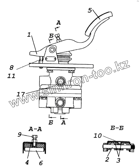 Каталог запасных частей к технике: Камский автозавод 5460. Кран тормозной двухсекционный с педалью