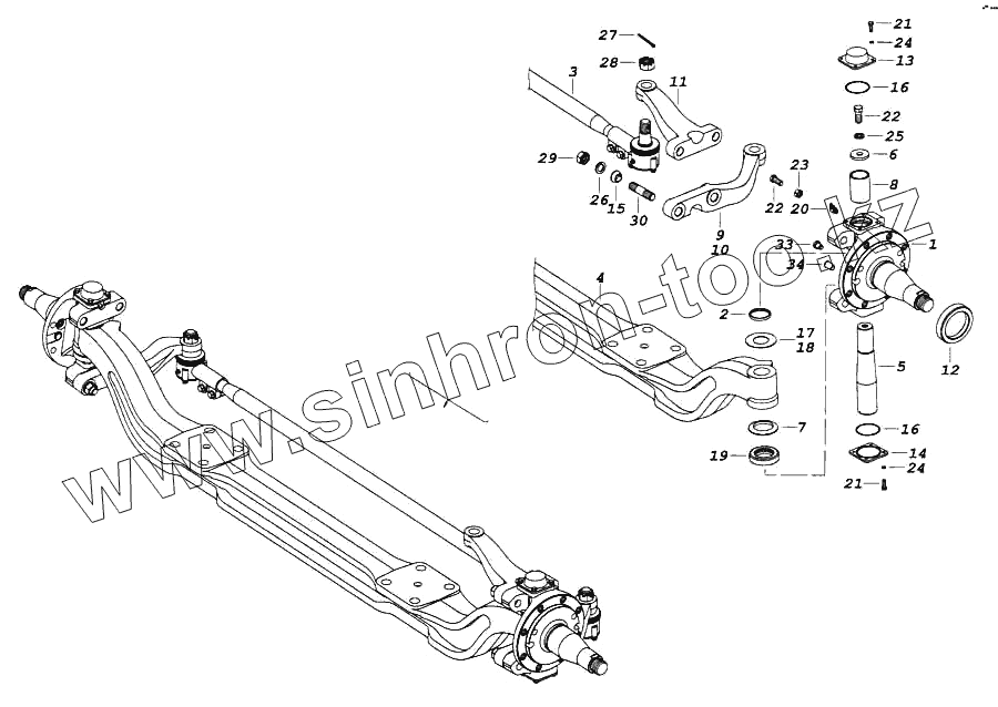 Каталог запасных частей к технике: Камский автозавод 5460. Ось передняя