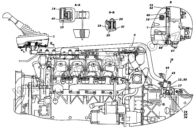 Каталог запасных частей к технике: Камский автозавод 5460. Привод управления механизмом переключения передач