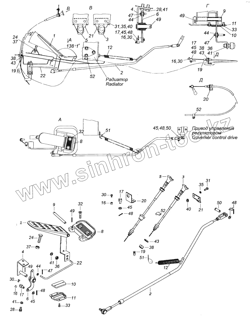 Каталог запасных частей к технике: Камский автозавод 5460. Управление подачей топлива