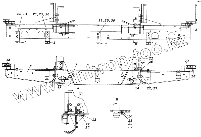 Каталог запасных частей к технике: Камский автозавод 5460. Установка буксирной поперечины