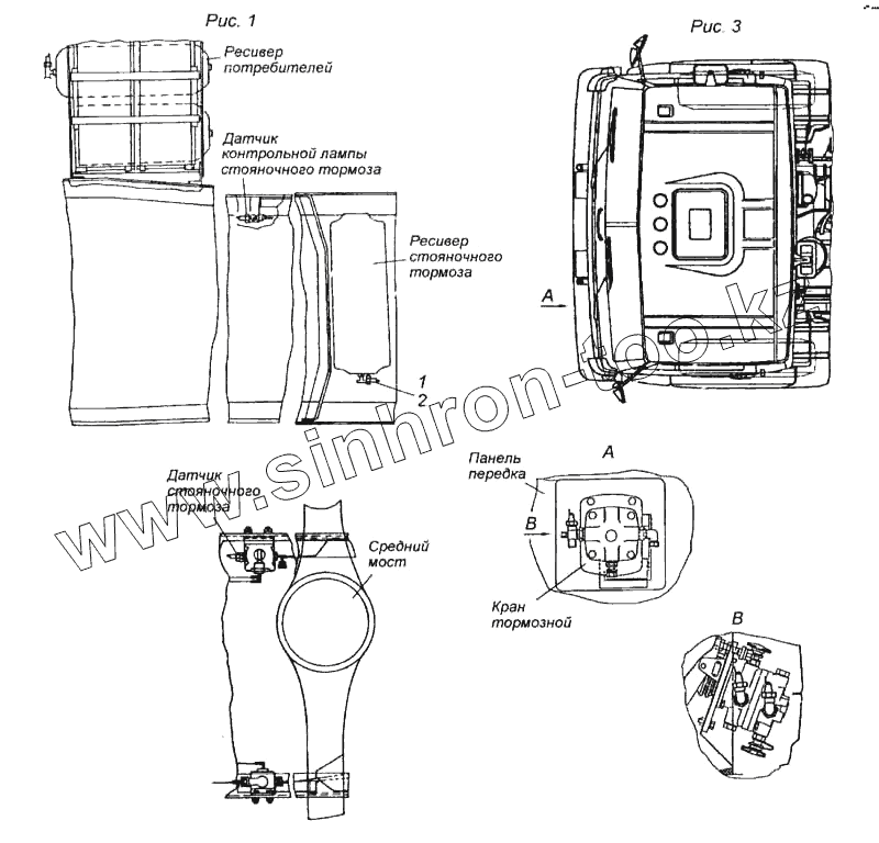 Каталог запасных частей к технике: Камский автозавод 5460. Установка датчиков аварийного давления воздуха