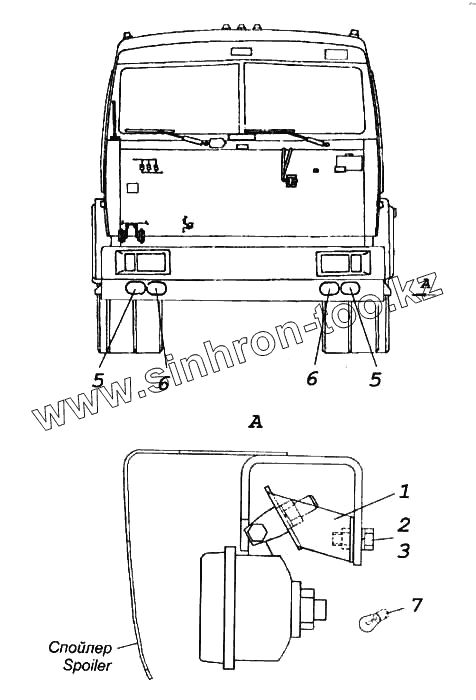 Каталог запасных частей к технике: Камский автозавод 5460. Установка фар дополнительных и противотуманных