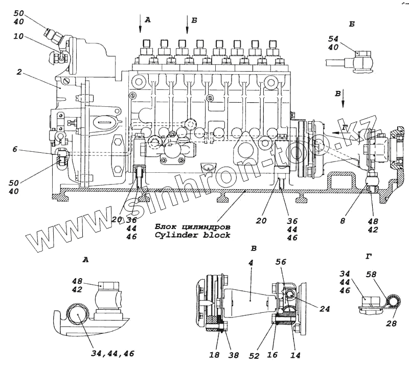 Каталог запасных частей к технике: Камский автозавод 5460. Установка и привод ТНВД