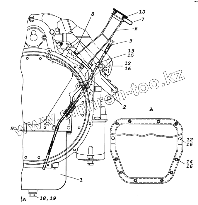 Каталог запасных частей к технике: Камский автозавод 5460. Установка картера масляного