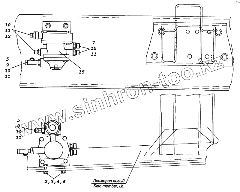 Каталог запасных частей к технике: Камский автозавод 5460. Установка клапана управления тормозами прицепа