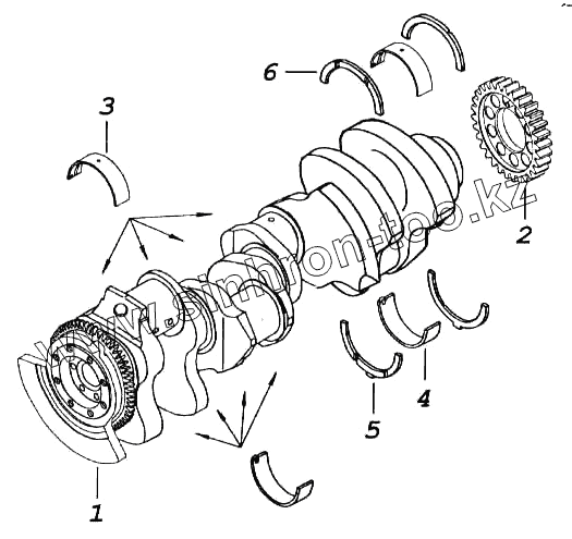 Каталог запасных частей к технике: Камский автозавод 5460. Установка коленчатого вала