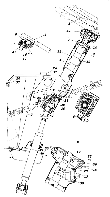 Каталог запасных частей к технике: Камский автозавод 5460. Установка колонки рулевого управления