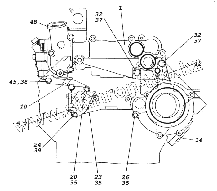 Каталог запасных частей к технике: Камский автозавод 5460. Установка корпуса водяных каналов