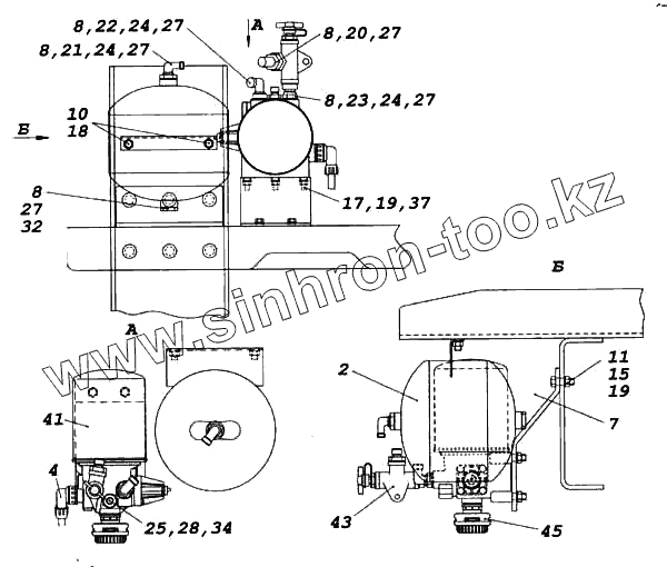 Каталог запасных частей к технике: Камский автозавод 5460. Установка осушителя