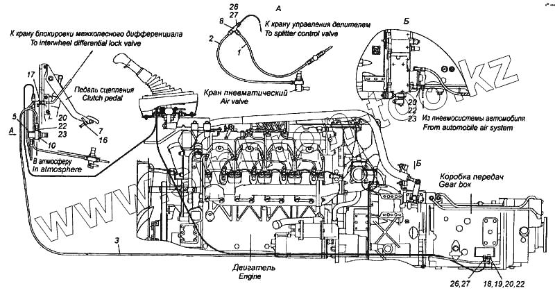 Каталог запасных частей к технике: Камский автозавод 5460. Установка пневмопривода управлением переключения передач