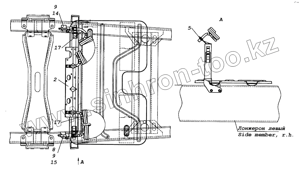 Каталог запасных частей к технике: Камский автозавод 5460. Установка пневмовыводов к полуприцепу