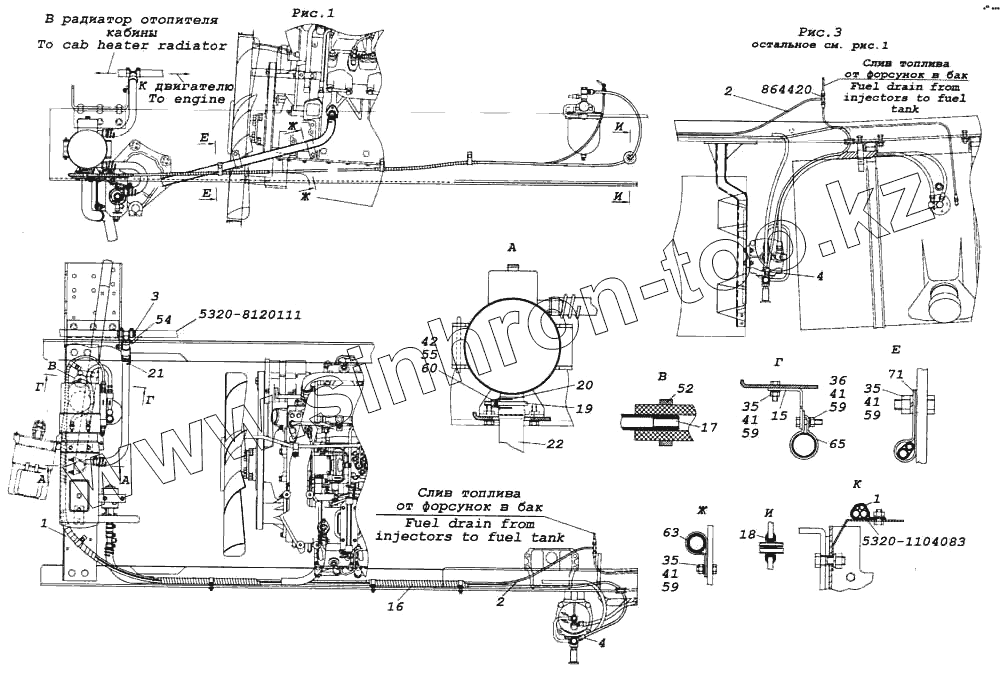 Каталог запасных частей к технике: Камский автозавод 5460. Установка подогревателя 15.8106-03