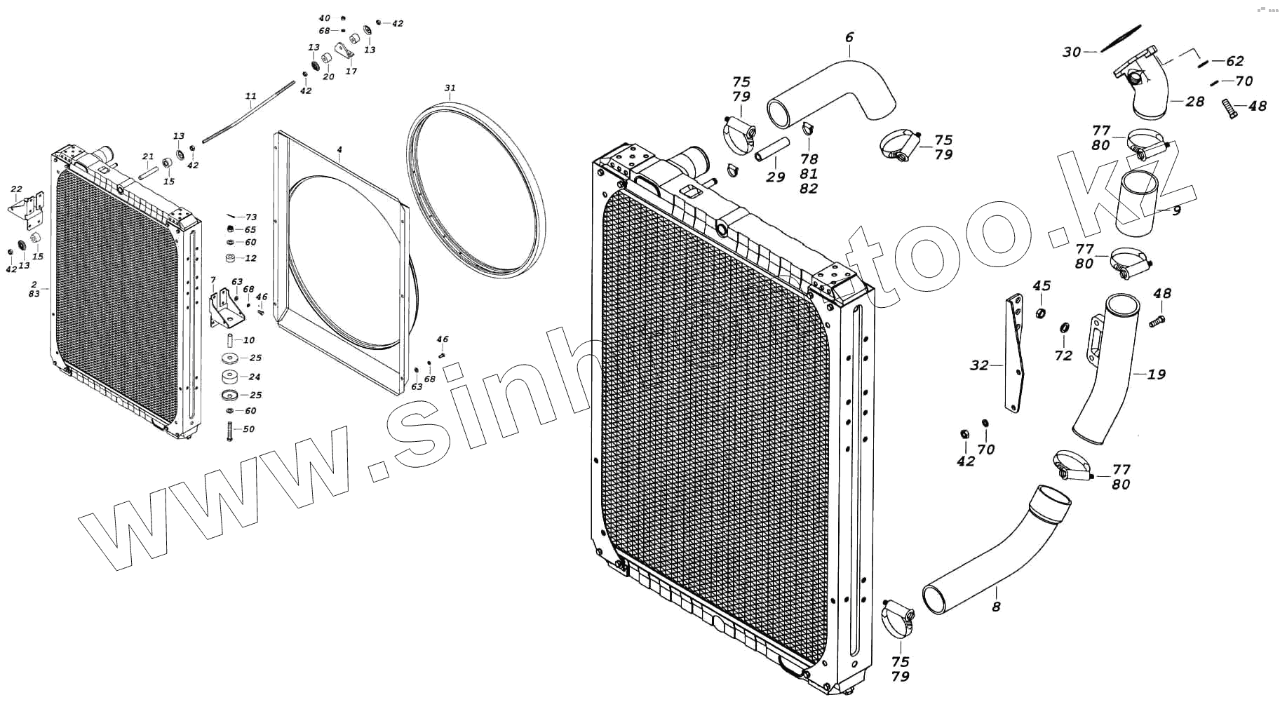 Каталог запасных частей к технике: Камский автозавод 5460. Установка радиатора