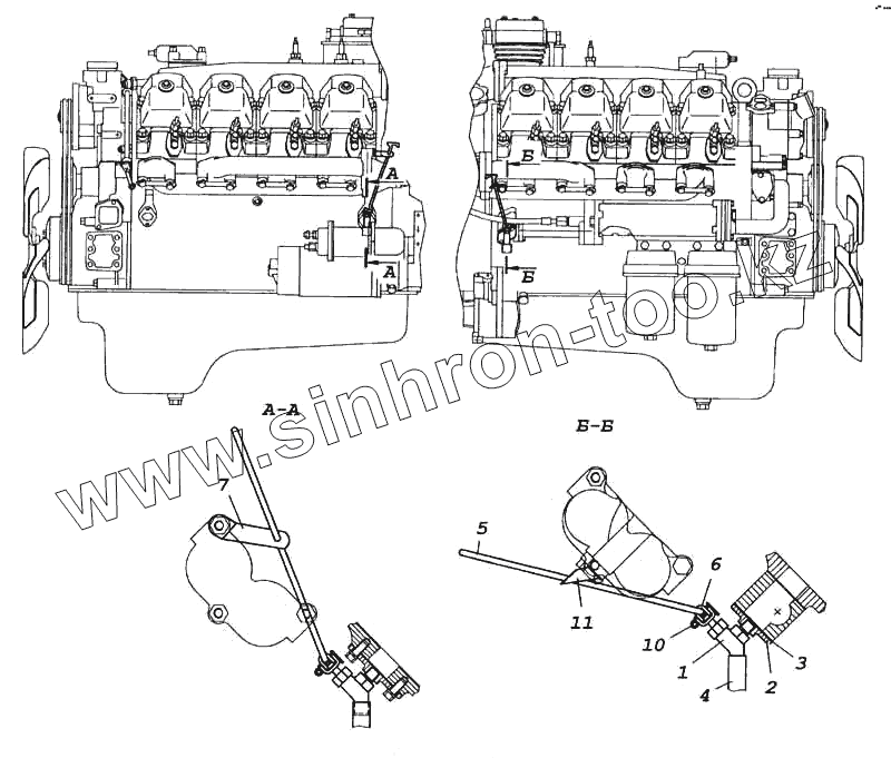 Каталог запасных частей к технике: Камский автозавод 5460. Установка сливных кранов системы охлаждения привода управления