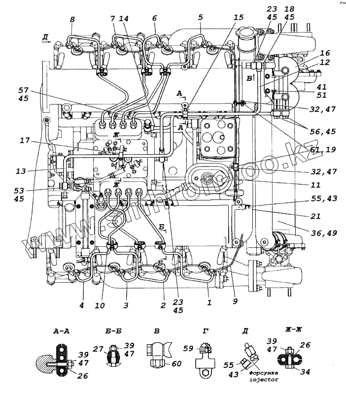 Каталог запасных частей к технике: Камский автозавод 5460. Установка топливопроводов