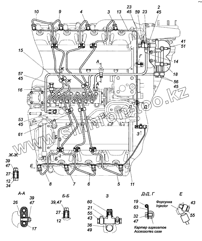 Каталог запасных частей к технике: Камский автозавод 5460. Установка топливопроводов