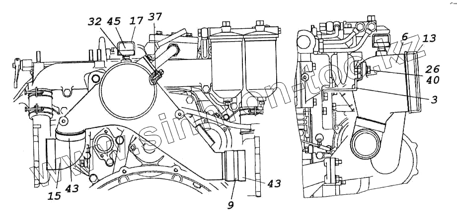 Каталог запасных частей к технике: Камский автозавод 5460. Установка тройника