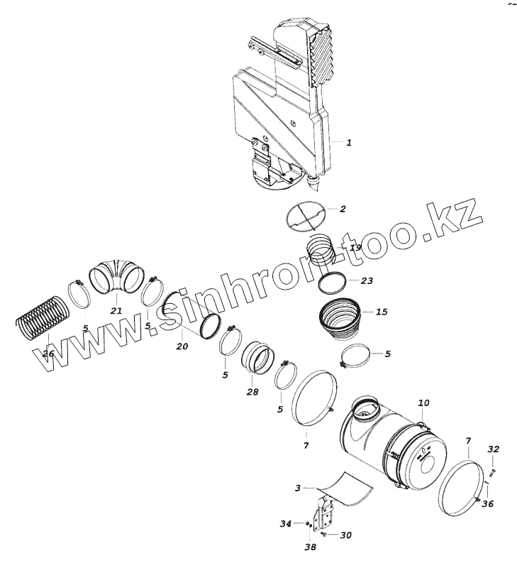 Каталог запасных частей к технике: Камский автозавод 5460. Установка воздушного фильтра