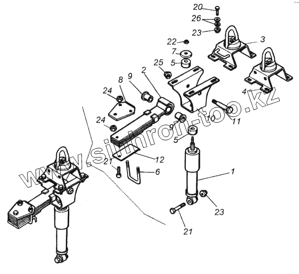 Каталог запасных частей к технике: Камский автозавод 5460. Установка задней подвески кабины