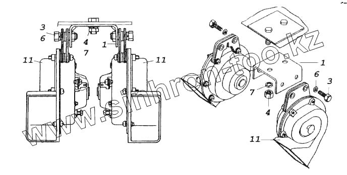 Каталог запасных частей к технике: Камский автозавод 5460. Установка звуковых электрических сигналов