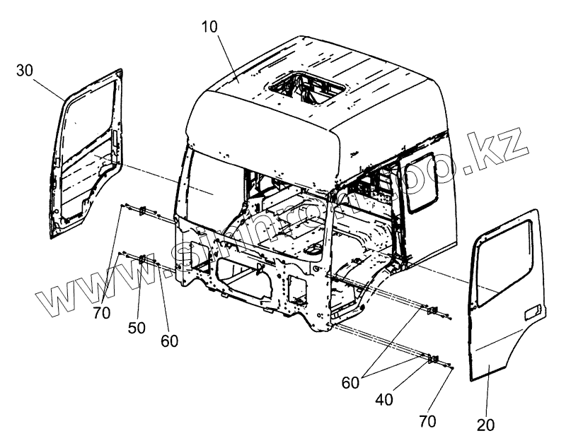 Каталог запасных частей к технике: Камский автозавод 5490. 0000-5000014 Каркас кабины окрашенный с дверями