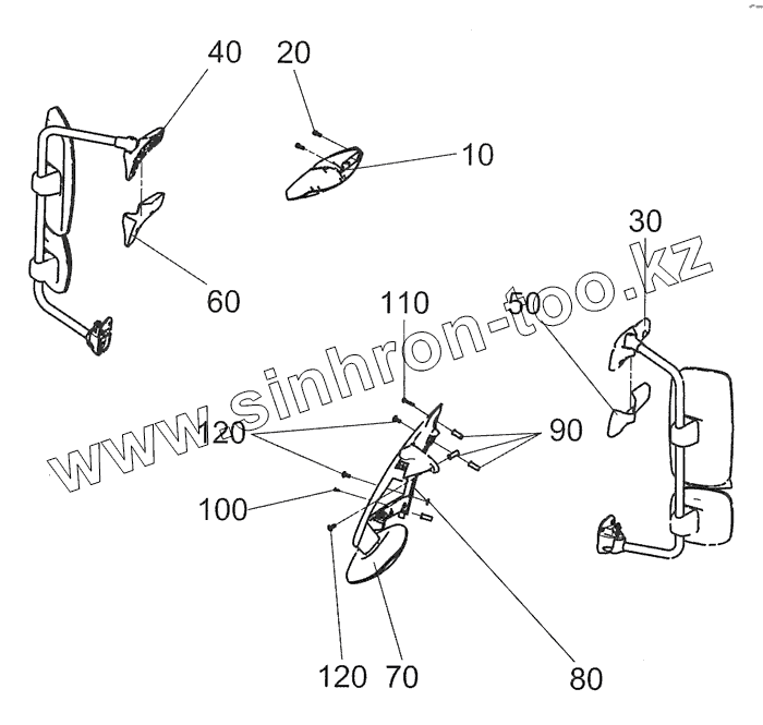 Каталог запасных частей к технике: Камский автозавод 5490. 0000-8201002 Установка комплекта зеркал