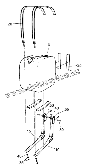 Каталог запасных частей к технике: Камский автозавод 5490. 5490-1208001-10 Установка бака нейтрализующей жидкости