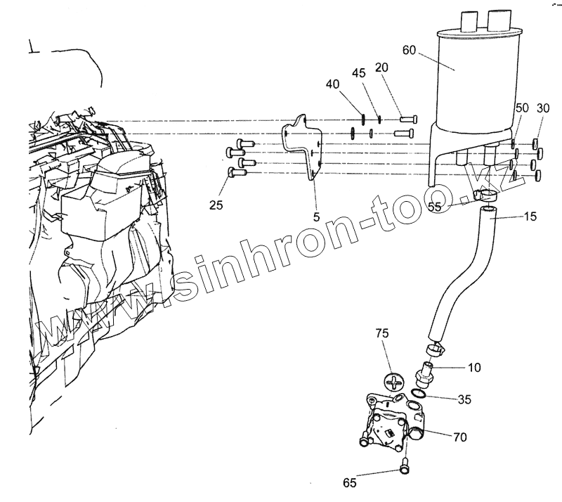Каталог запасных частей к технике: Камский автозавод 5490. 5490-3400019 Установка бачка и насоса ГУР