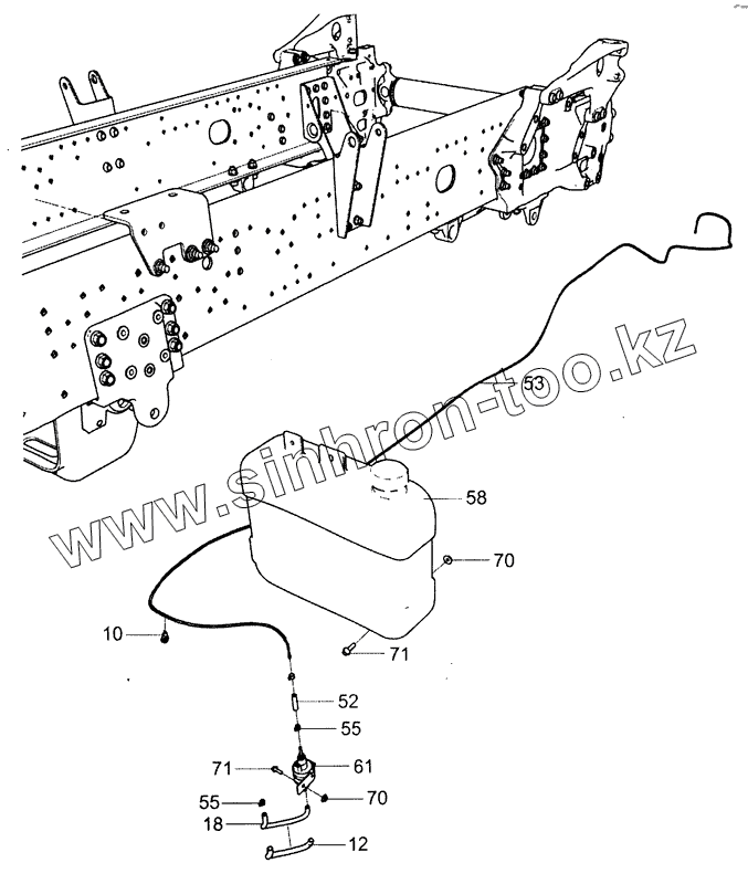 Каталог запасных частей к технике: Камский автозавод 5490. 5490-8106002 Установка автономного топливного бачка