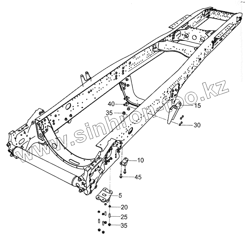 Каталог запасных частей к технике: Камский автозавод 5490. 65205-2900006 Установка кронштейнов передней подвески