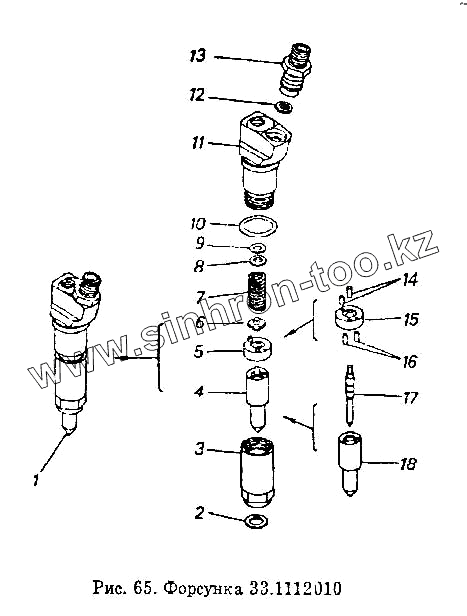 Каталог запасных частей к технике: Камский автозавод 55102. Форсунка