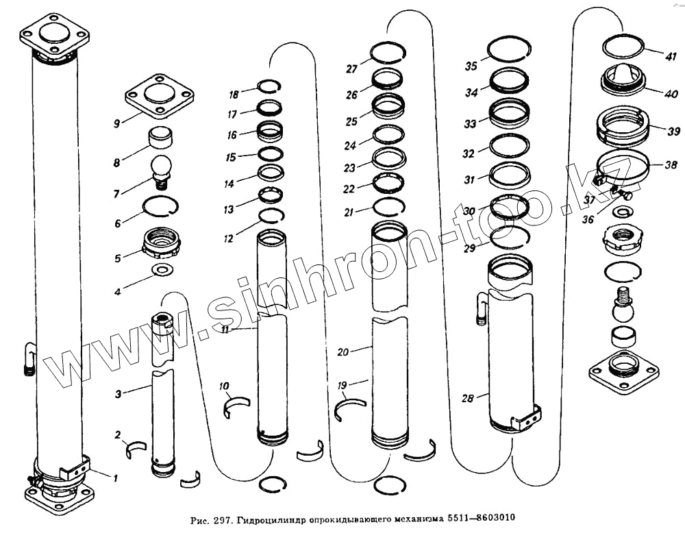 Каталог запасных частей к технике: Камский автозавод 55102. Гидроцилиндр опрокидывающего механизма 5511-8603010