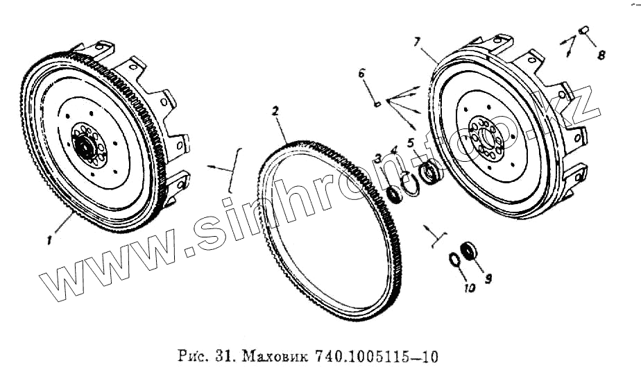 Каталог запасных частей к технике: Камский автозавод 55102. Маховик