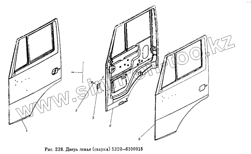 Каталог запасных частей к технике: Камский автозавод 5511. Дверь левая (сварка)