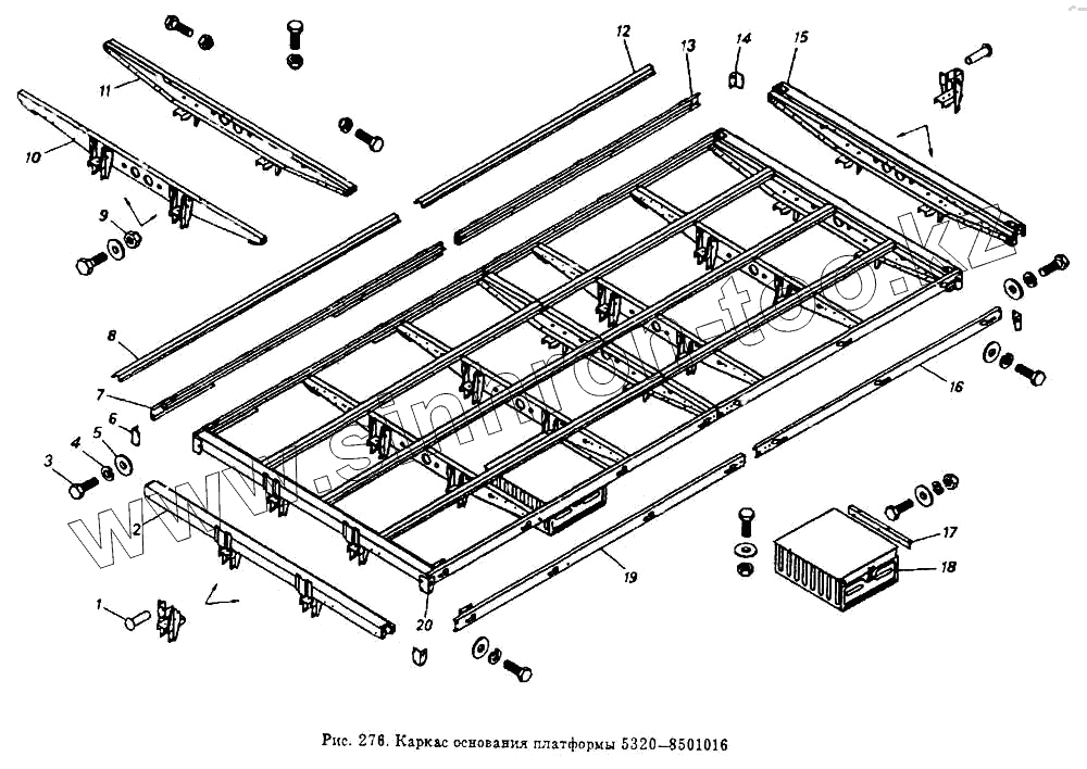 Каталог запасных частей к технике: Камский автозавод 5511. Каркас основания платформы 5320-8501016