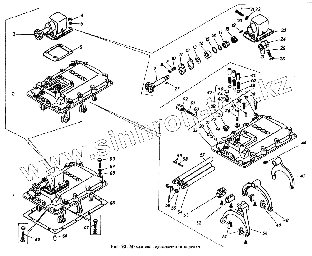 Каталог запасных частей к технике: Камский автозавод 5511. Механизм переключения передач