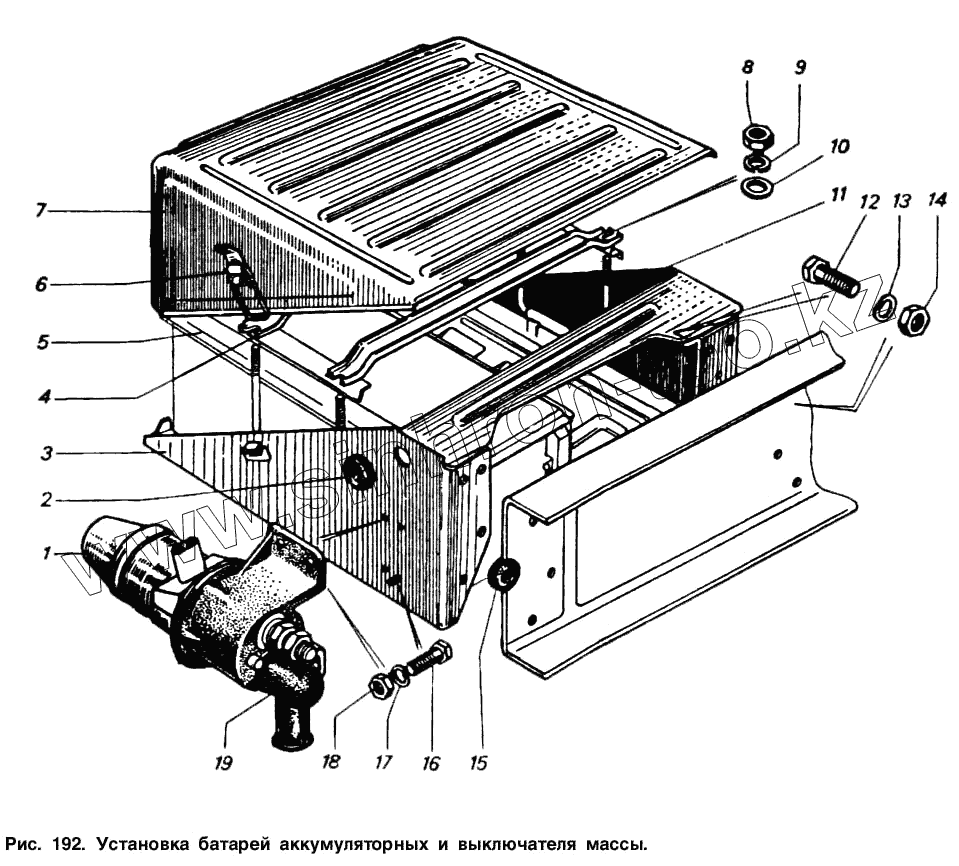 Каталог запасных частей к технике: Камский автозавод 5511. Установка батарей аккумуляторных