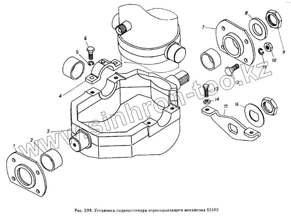 Каталог запасных частей к технике: Камский автозавод 5511. Установка гидроцилиндра опрокидывающего механизма