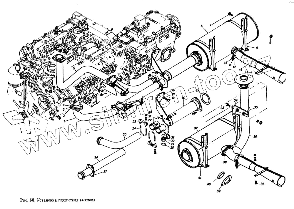 Каталог запасных частей к технике: Камский автозавод 5511. Установка глушителя выхлопа