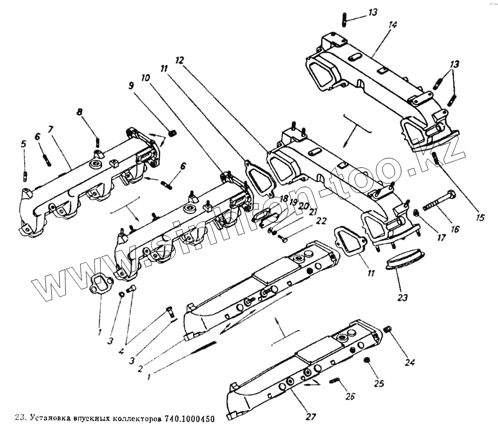 Каталог запасных частей к технике: Камский автозавод 5511. Установка впускных коллекторов