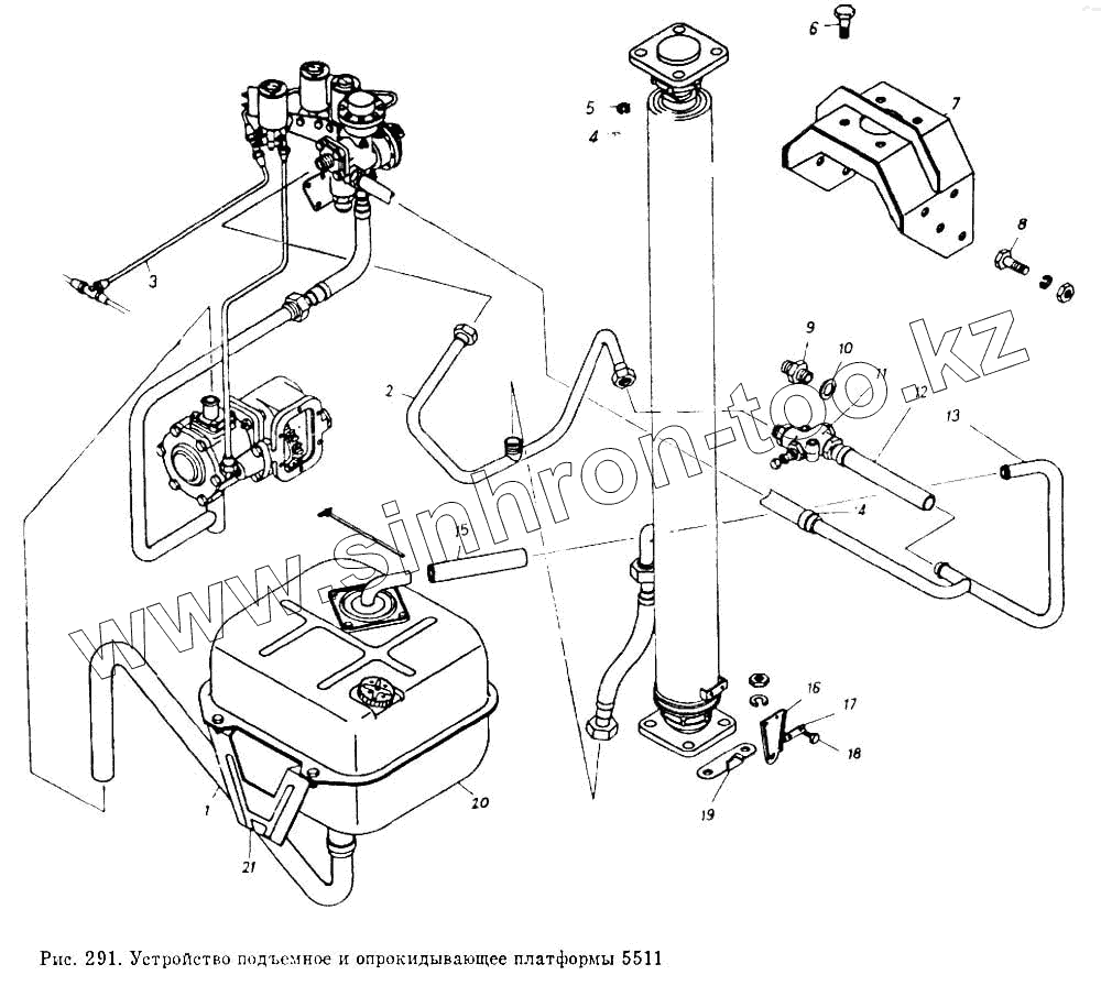 Каталог запасных частей к технике: Камский автозавод 5511. Устройство подъемное и опрокидывающее платформы 5511
