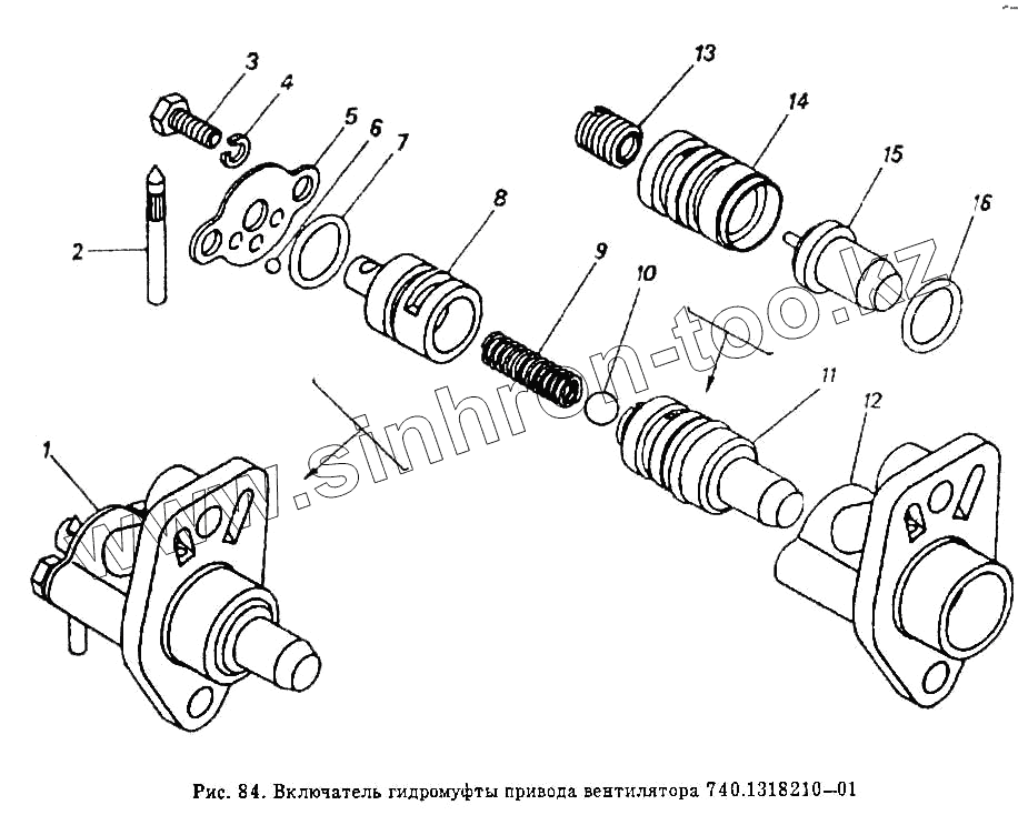 Каталог запасных частей к технике: Камский автозавод 5511. Включатель гидромуфты привода вентилятора